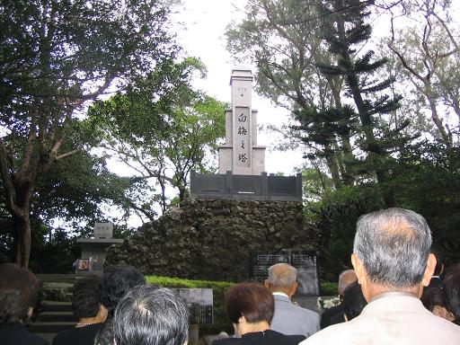 島守の塔前の拝礼